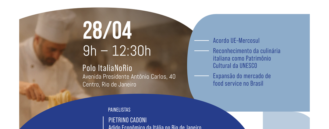 O encontro será realizado no dia 28 de abril, das 9h às 12h30, reunindo autoridades, especialistas e representantes do setor gastronômico para discutir o papel estratégico da culinária italiana no Brasil — não apenas como expressão cultural, mas como ativo econômico relevante no comércio internacional.