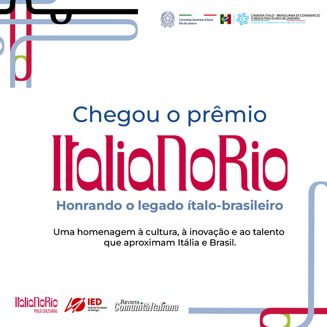 O Consulado Geral da Itália no Rio de Janeiro e a Câmara Ítalo-Brasileira de Comércio e Indústria lançaram o Prêmio ItaliaNoRio, que recebe inscrições de 2 de outubro a 3 de dezembro. A iniciativa busca reconhecer pessoas, projetos e instituições que contribuem para fortalecer os laços culturais, econômicos e sociais entre Brasil e Itália.